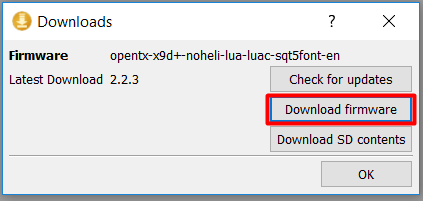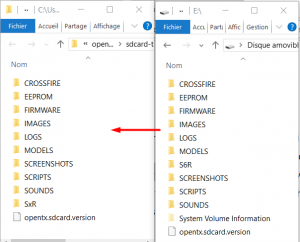 - Once finished, uncompress the content of the SDCard Content previously downloaded from OpenTX and replace the content on the memory card in your radio with the one just uncompressed.