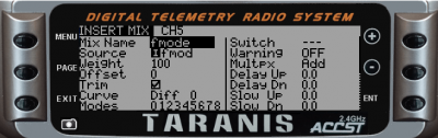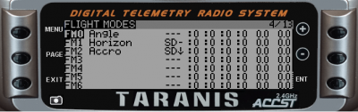 This screen will let you define flight modes as well as the associated switch. It is very common to define the following flight modes: