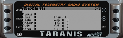 This screen can be used to check that all switches/buttons/sticks work properly on your radio.