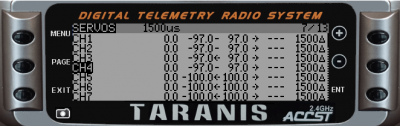 This screeen shows the current value of your AUX channels. For example, the throttle stick associated to A2 on the below screenshot has value -88 (minimum: -100, max: +100)