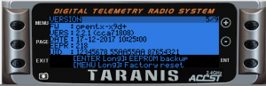 - Put the Taranis in bootloader mode (press both horizontal trims inwards while powering on the radio):