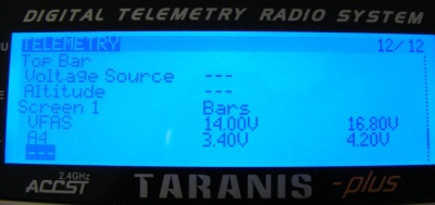 Then identify the sensors you are interested in (e.g. VFAS is the power sent by the VBAT link and A4 is the lowest cell voltage):