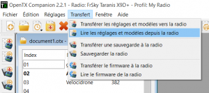 - Open CompanionTX and go to menu Transfer > Read models and settings from the radio: