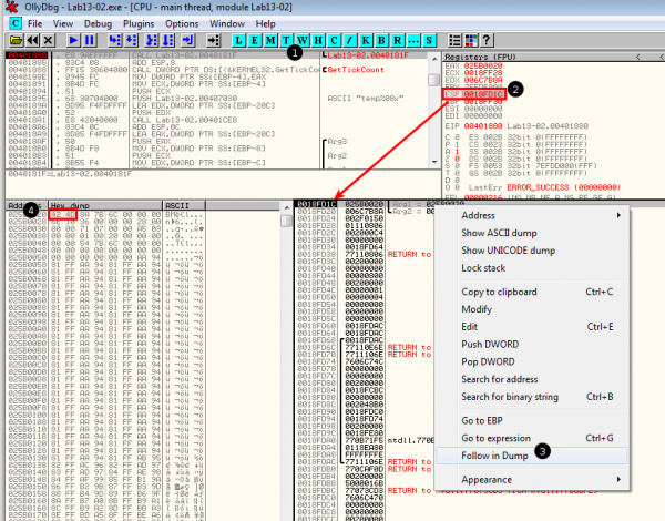 Once the program has reached our first breakpoint (0x401880), the arguments on the stack represent the buffer that is about to be encrypted: