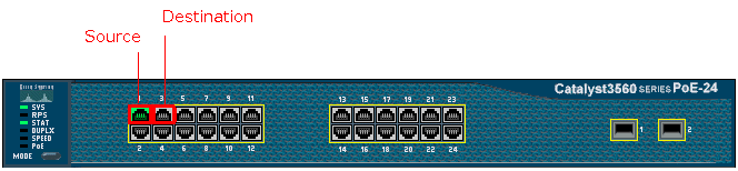 Switch(config)# no monitor session 1 Switch(config)# monitor session 1 source interface FastEthernet0/1 Switch(config)# monitor session 1 destination interface FastEthernet0/3 Switch(config)# end