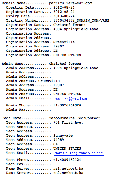 We immediately notice that the website is hosted in the US, which seems suspicious for such a famous french company. This is confirmed by the whois information: