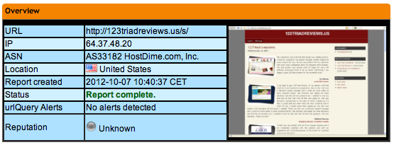 - the link points to 123triadreviews.us (put your mouse over the link without clicking it to reveal the domain)