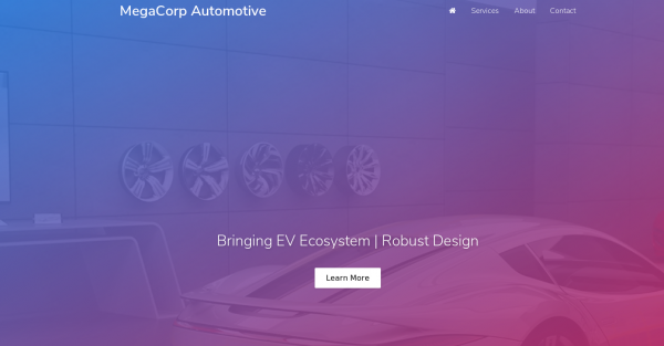 It seems to be a website for the electric vehicle manufacturer MegaCorp. Scrolling down, we note that a reference is made to logging in.