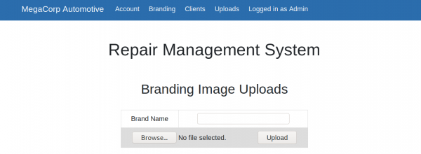 This is successful, and we gain access to the upload page, which allows branding images to be uploaded.