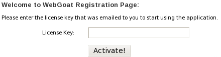 Cet exercice propose un formulaire d'activation d'un produit avec un numéro de licence. Le bouton "Activate" ne devient opérant que lorsque le numéro de série saisi est valide. Pourtant, la désactivation du bouton "Activate" n'est assurée que par la propriété HTML "disabled", dont il est aisé de s'affranchir, en modifiant le corps de la page.