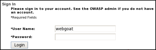 Pour résoudre cet exercice, saisir "webgoat" dans "User Name" et rien du tout dans le champ "Password" :