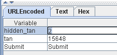 Néanmoins, la mise en place de la dite "sécurité" n'est pas fiable ici. En effet, une analyse avec WebScarab permet de forcer la valeur du champ masqué "hidden_tan" afin de le réinitialiser (faire passer la valeur de 2 à 1) :
