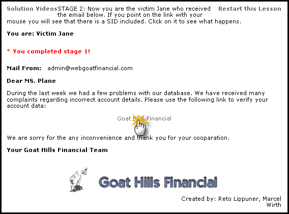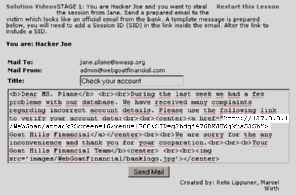 A ce stade, le pirate rédige un mail à destination de la victime. Dans le lien vers le portail de la banque, il y ajoute une session "préparée" (Ajout du SID "g3hdgj476DKJHdjkhs53Sh").