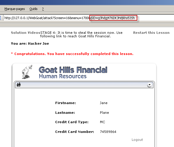 L'objectif de ce tutoriel est de vous montrer comment une personne malveillante peut récupérer des informations d'une victime à partir d'une session déterminée à l'avance par le pirate.