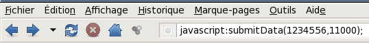 Comme on peut le constater, la fonction submitData() n'est appelée que lorsque tous les tests préliminaires sont remplis. Or, ce qui est demandé ici consiste justement à s'en affranchir. Pour ce faire, il est possible (tous les navigateurs récents prennent en charge cette fonctionnalité) d'appeler directement dans l'URL la fonction JavaScript comme suit :