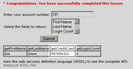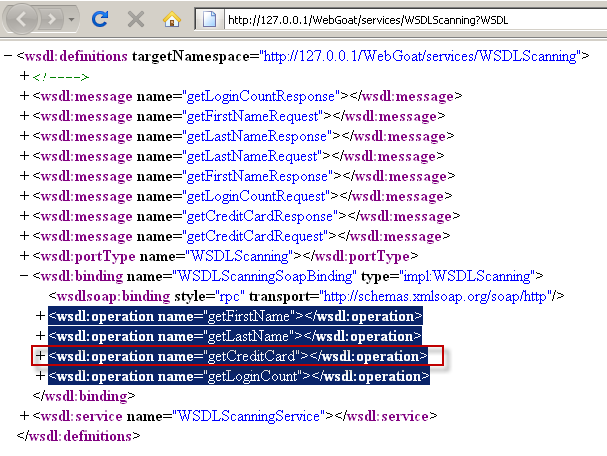 La consultation du WebService (http://127.0.0.1/WebGoat/services/WSDLScanning?WSDL) nous permet d'établir les relations suivantes :