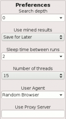 - search depth: defines how many levels of search results SEAT will traverse/digg. 0 will order to give up after the first page.