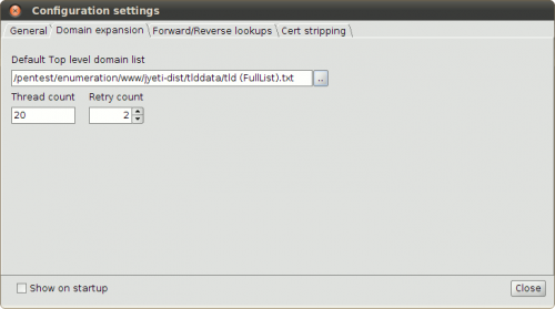 This tab enables to specify the path to the TLD list file, initially located in the tlddata/ directory of your installation.