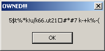 | 0x4013C4 | lpCaption (The dialog box title) | ebx | 'OWNED!!!' |