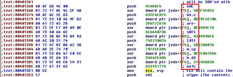 .text:00401361 ; will be XOR'ed with 0x32FBA316