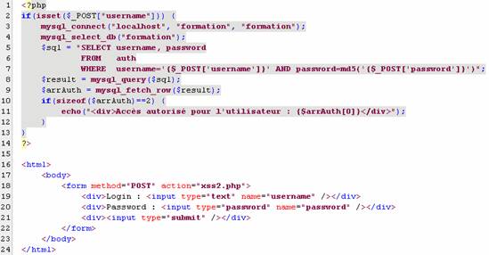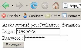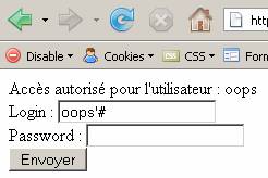 L'exemple suivant montre l'exploitation d'une faille sur une page d'authentification non sécurisée.